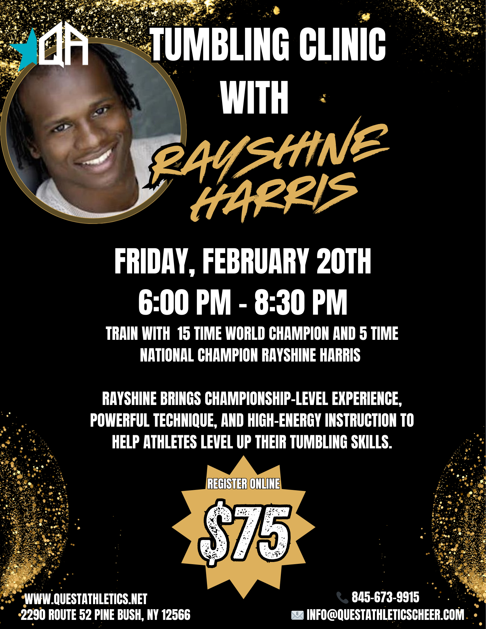 For 24 years, Quest Athletics has provided a quality experience for athletes of all ages and skill levels. Our services include cheer, tumble, T&T Gymnastics, choreography and much more! Here at Quest Athletics – we are committed to providing each athlete with an environment of learning and growth.