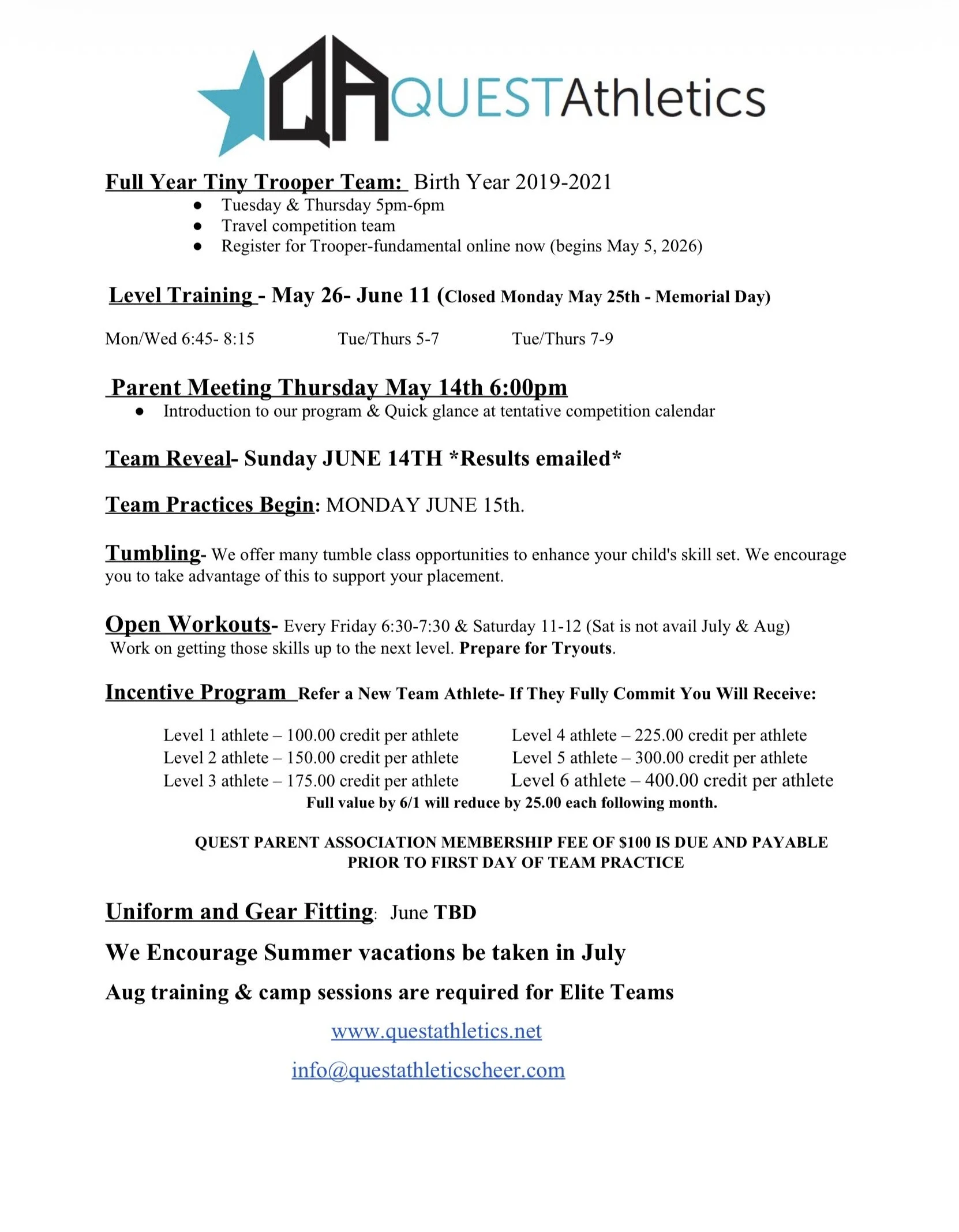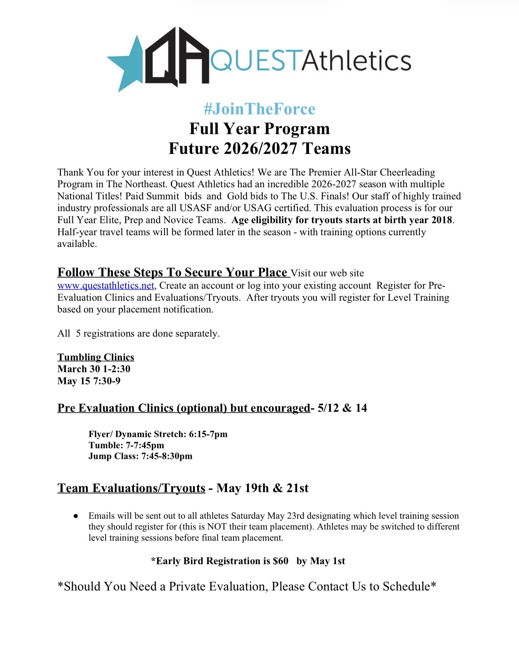 Quest Athletics moves into their 25th year and 2026-2027 Season! Making strides to give our athletes the best coaches and facility in Orange County!